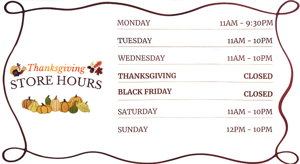 Tuesday - Thursday: 11:00 am - 10:00 pm
